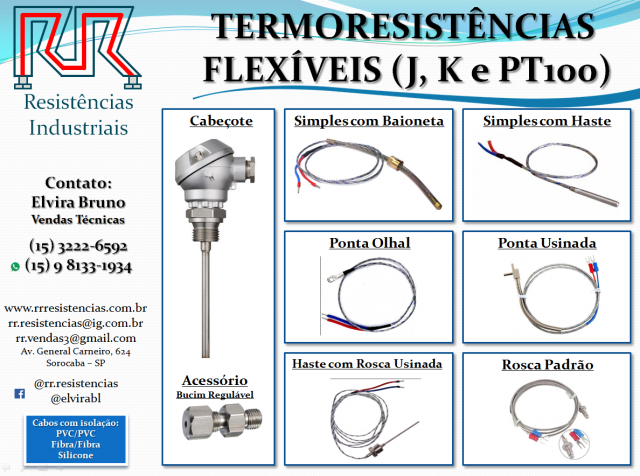 Termopar tipo J (Fe-Co), haste de aco inox 304, cabo de fibra de vidro flexivel com malha de cobre estanhado. Pode ser utilizado ate 280 graus C, com seguranca.